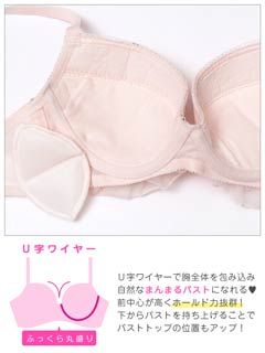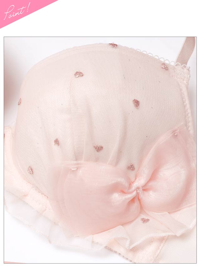 ブロッサムギャザーレース育乳脇高ブラジャー&バック透けフルバックショーツ