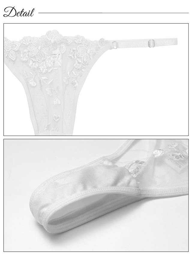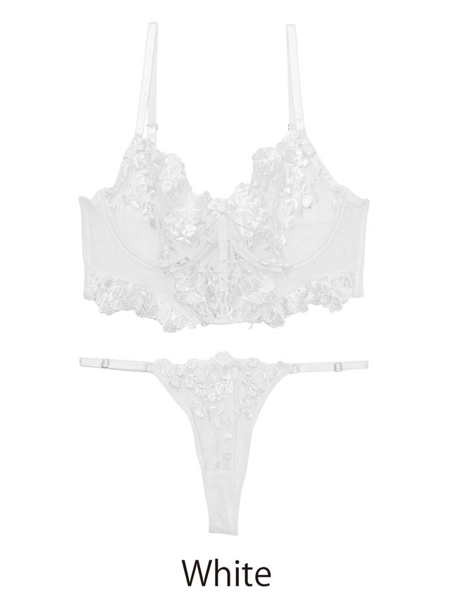 オールレースカットストリング育乳脇高ブラジャー&バック透けフルバックショーツ