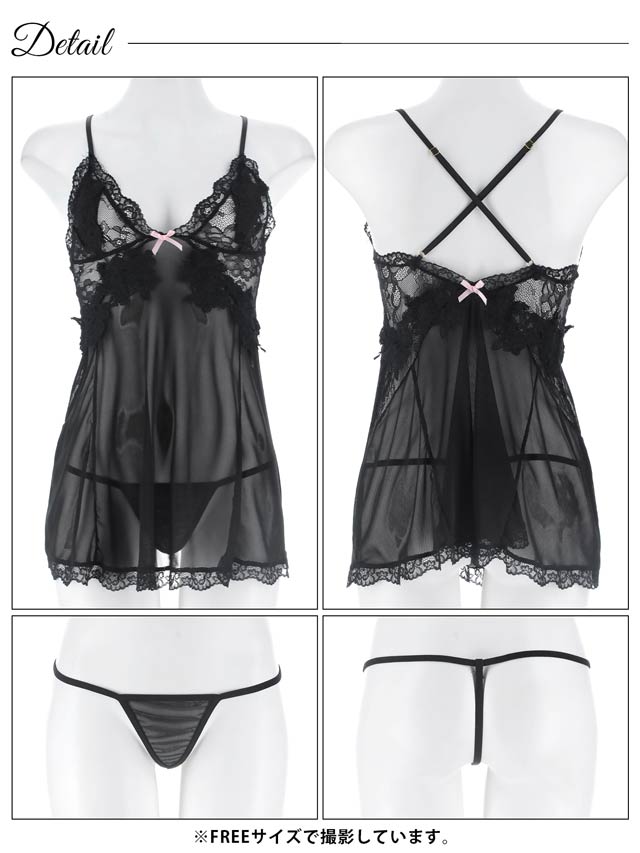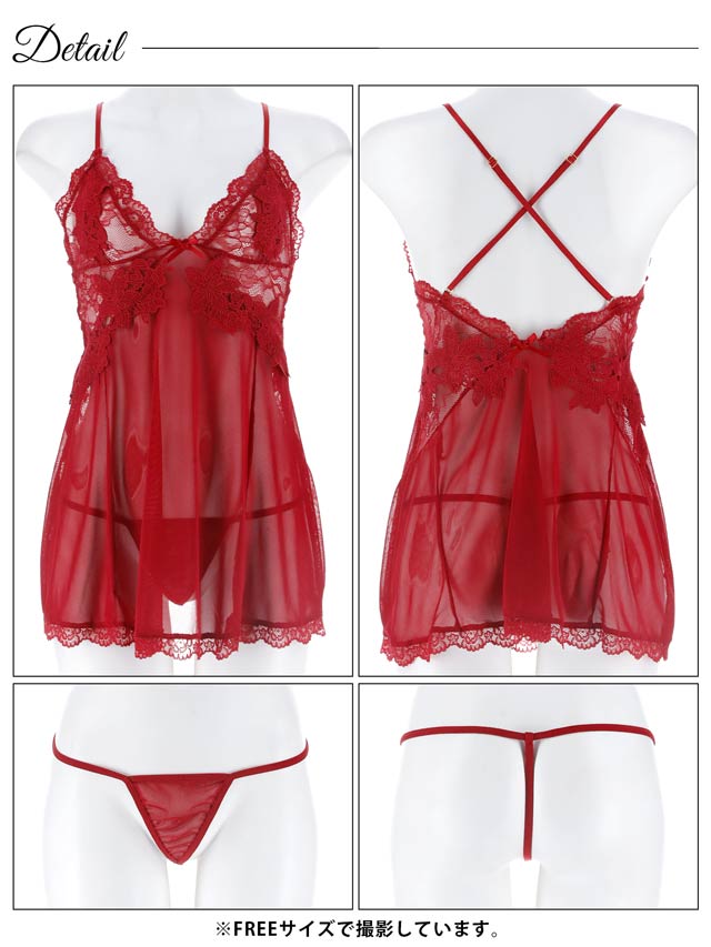 オールレースカットストリング育乳脇高ブラジャー&バック透けフルバックショーツ