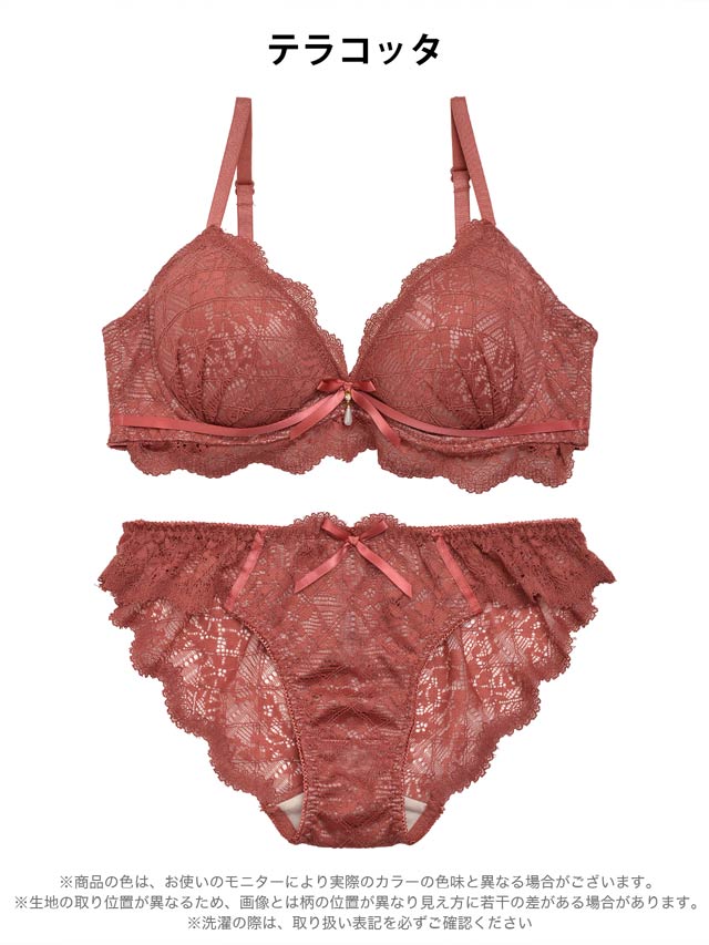 ブロッサムギャザーレース育乳脇高ブラジャー&バック透けフルバックショーツ