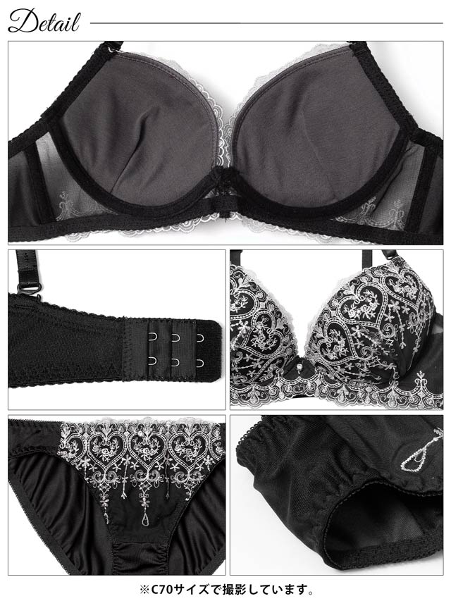 ダスティブルームエンブロイダリー育乳脇高ブラジャー&バック透けフルバックショーツ
