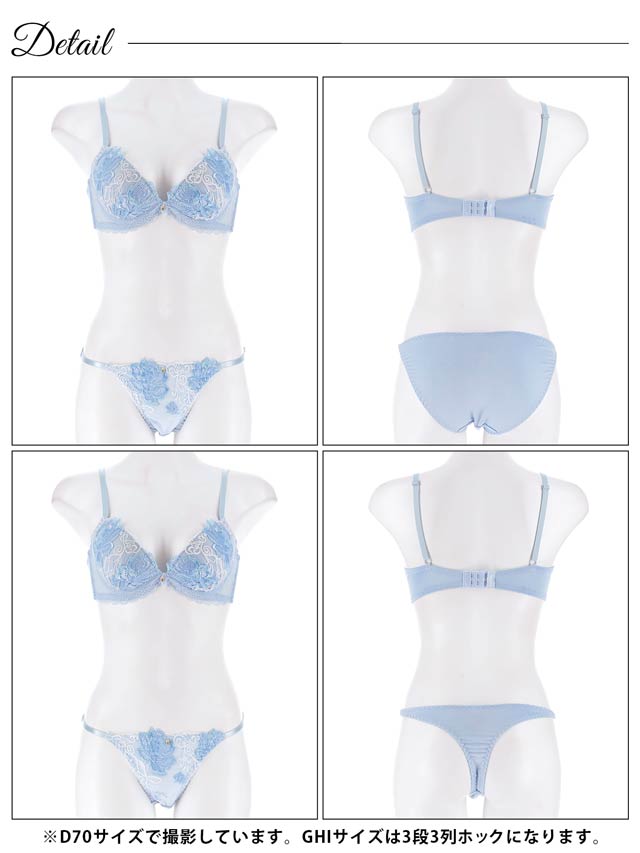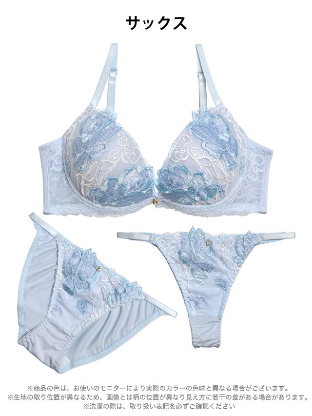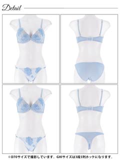 ダスティブルームエンブロイダリー育乳脇高ブラジャー&バック透けフルバックショーツ