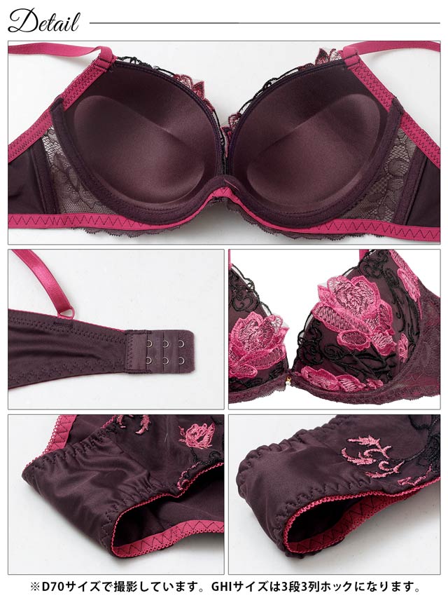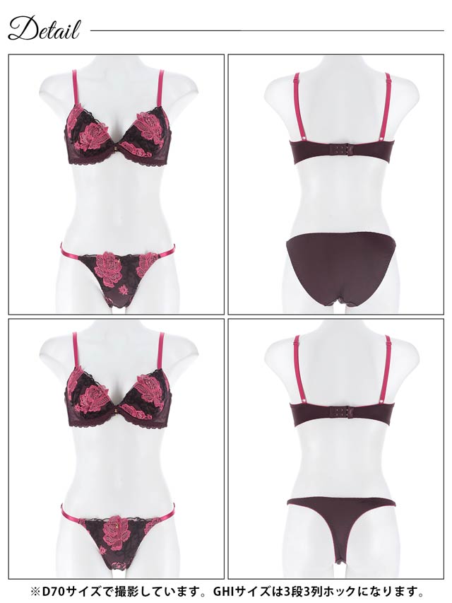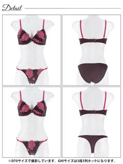 【3点セット】【GHIサイズ】ディープクイーンローズ育乳脇高ブラジャー&バック透けフルバック&Tバックショーツ