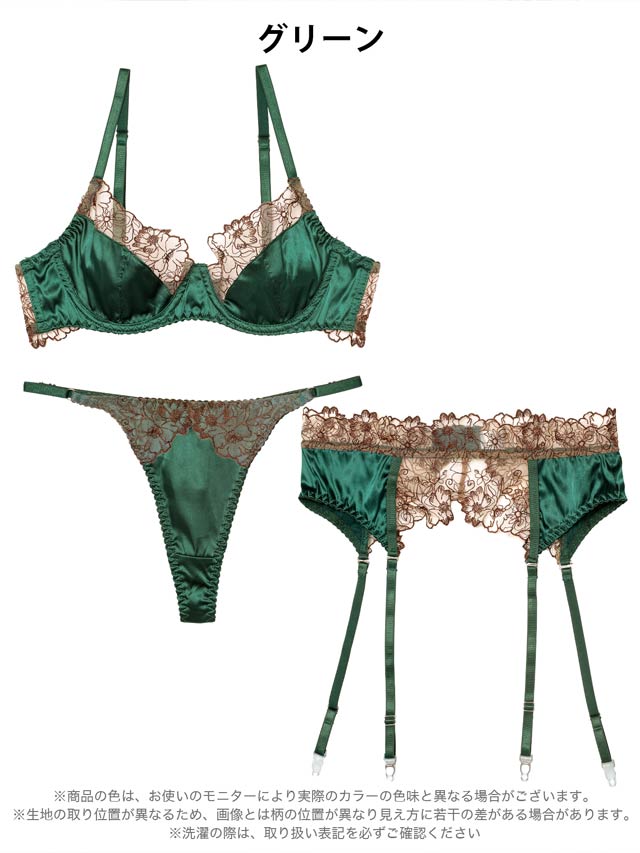 1/31再販!【3点セット】クラシックサテンフルールブラジャー&Tバック&ガーターベルト[大人気]