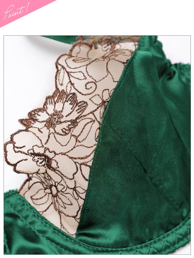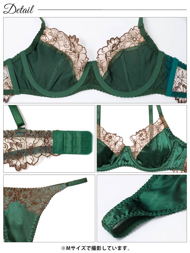 ダスティブルームエンブロイダリー育乳脇高ブラジャー&バック透けフルバックショーツ