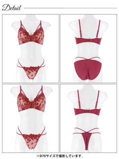 【3点セット】【GHIサイズ】ディープクイーンローズ育乳脇高ブラジャー&バック透けフルバック&Tバックショーツ