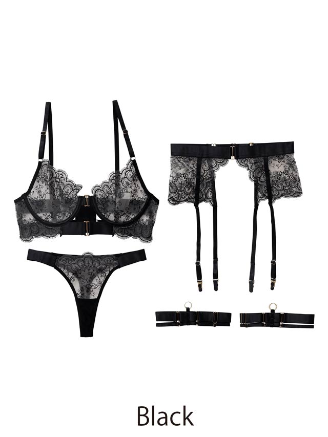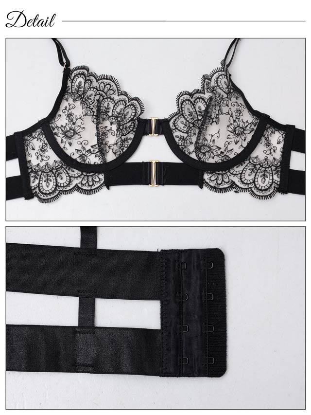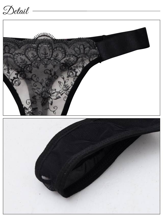 オールレースカットストリング育乳脇高ブラジャー&バック透けフルバックショーツ