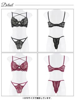オールレースカットストリング育乳脇高ブラジャー&バック透けフルバックショーツ