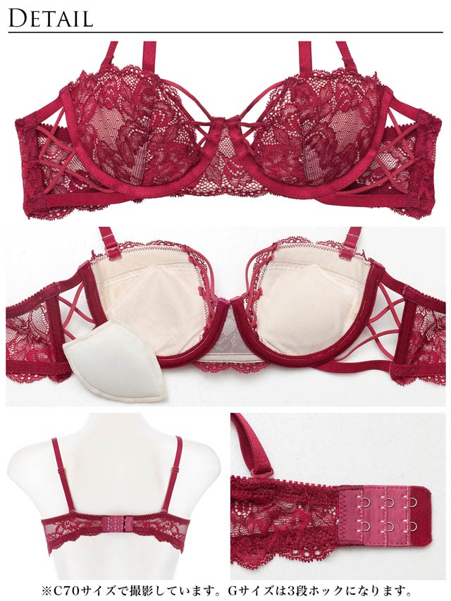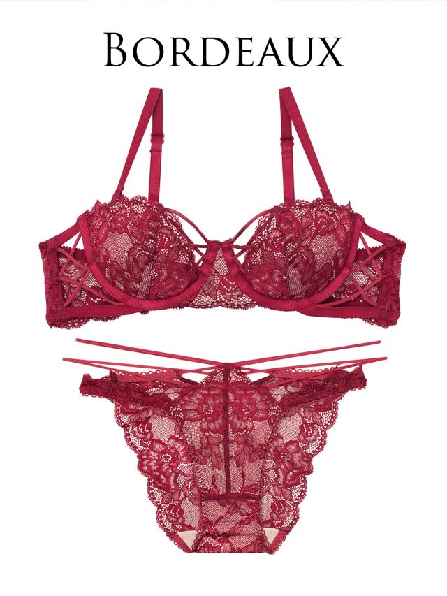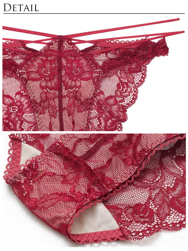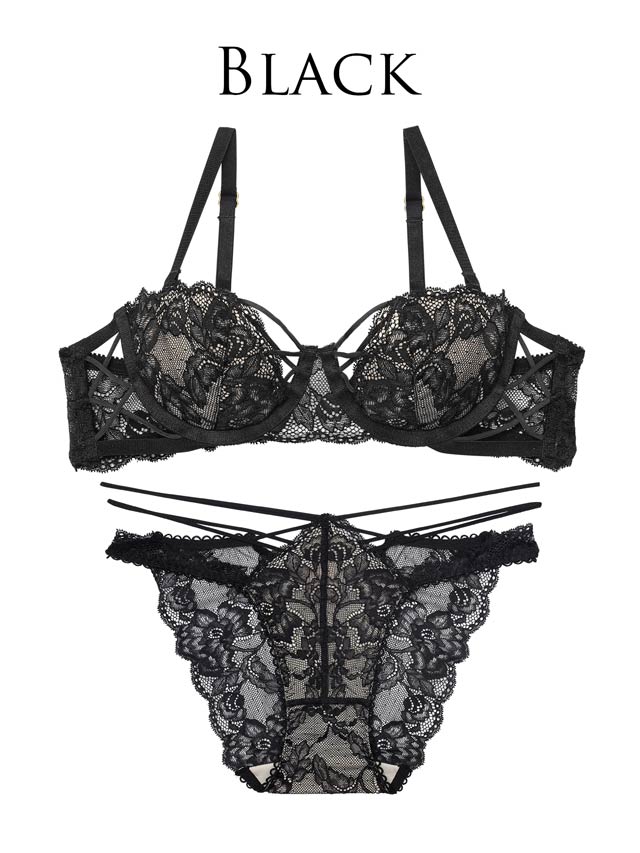 オールレースカットストリング育乳脇高ブラジャー&バック透けフルバックショーツ