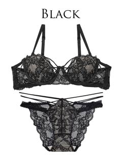 12/5再販!【EFサイズ】サテンflowerレースクロスコードブラジャー&バック透けフルバックショーツ[大人気]