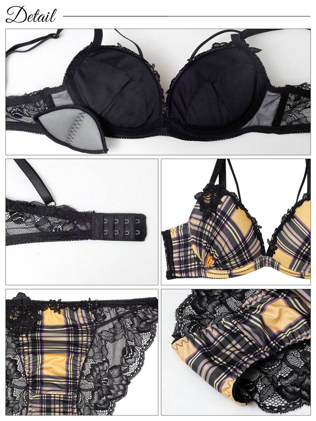 10/15新作!ビターモードチェックブラジャー&バック透けフルバックショーツ[激売れ]