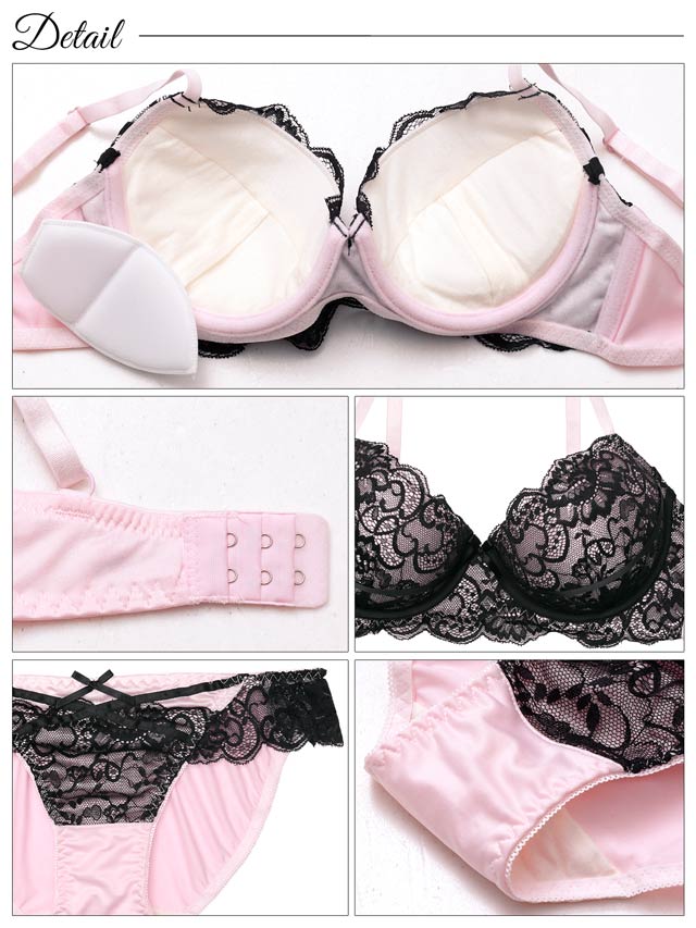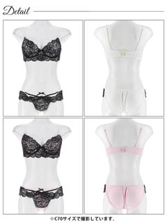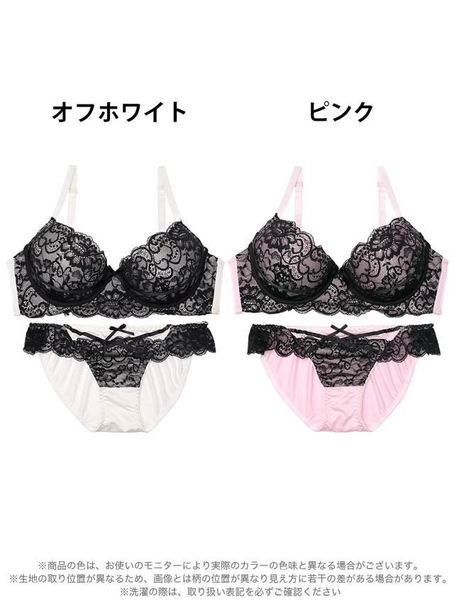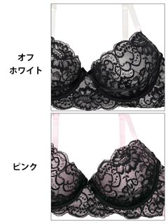 オールレースカットストリング育乳脇高ブラジャー&バック透けフルバックショーツ