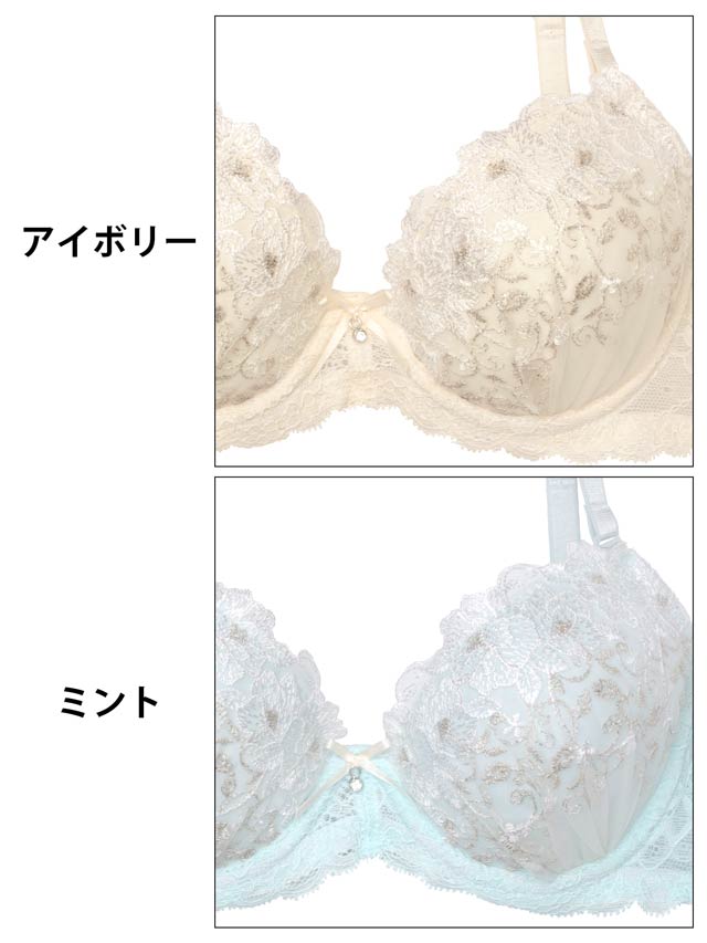 フロレゾンローズレース育乳脇高ブラジャー&サイド紐バック透けフルバックショーツ