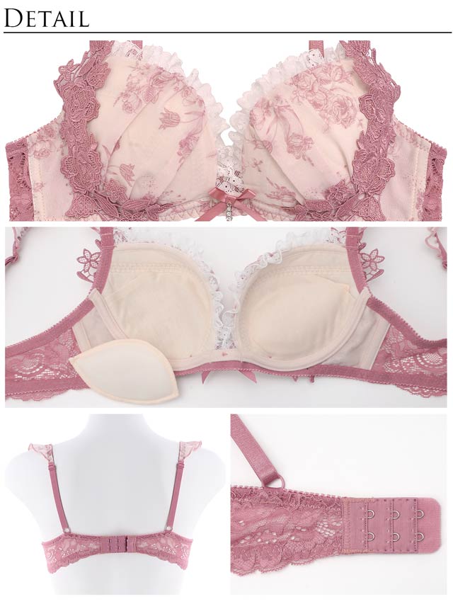 フロレゾンローズレース育乳脇高ブラジャー&サイド紐バック透けフルバックショーツ