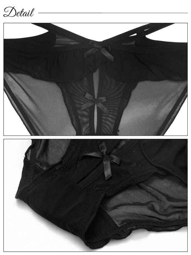 サテンレースバッククロスオールインワンルームウェア