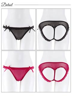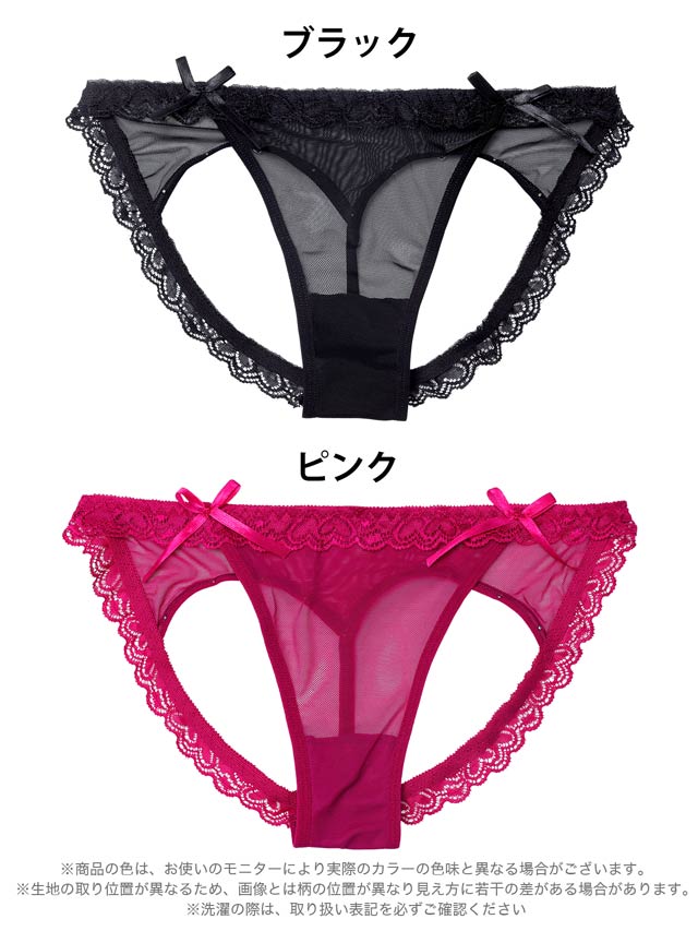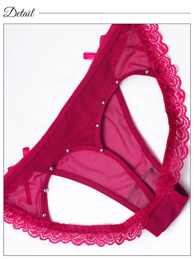 オールレースカットストリング育乳脇高ブラジャー&バック透けフルバックショーツ