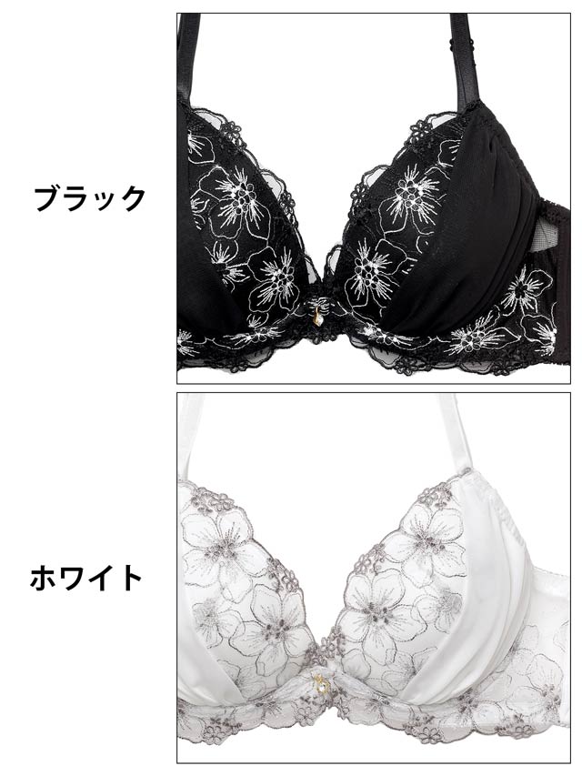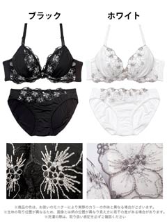 10/22新作!モノトーンフルールシフォンブラジャー&フルバックショーツ[激売れ]