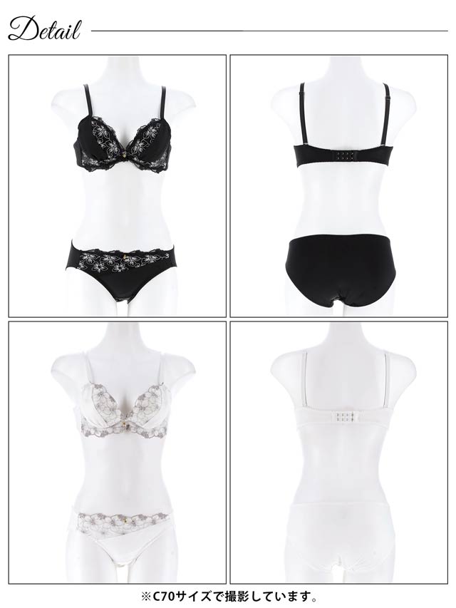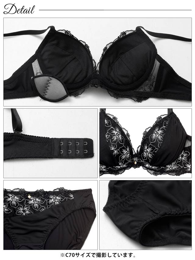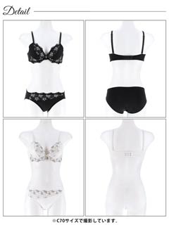 ダスティブルームエンブロイダリー育乳脇高ブラジャー&バック透けフルバックショーツ