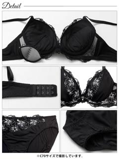 フロレゾンローズレース育乳脇高ブラジャー&サイド紐バック透けフルバックショーツ