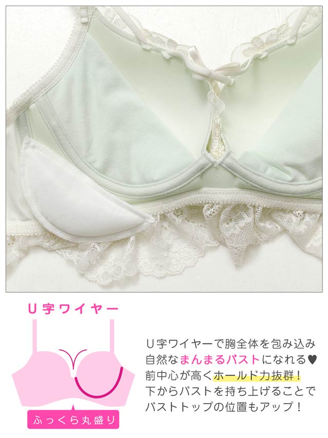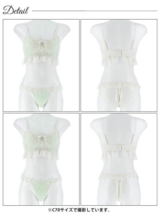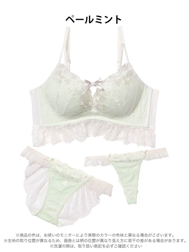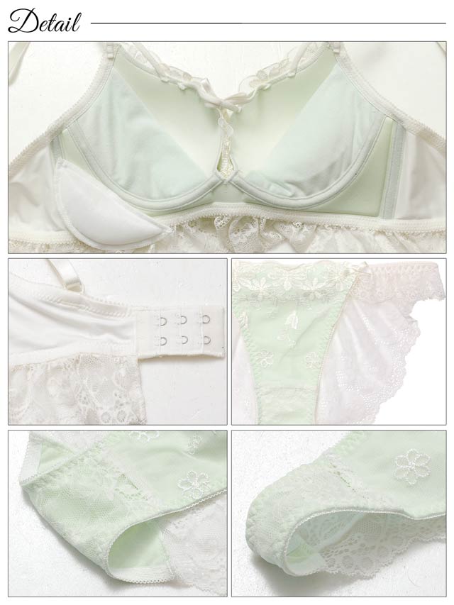 ダスティブルームエンブロイダリー育乳脇高ブラジャー&バック透けフルバックショーツ