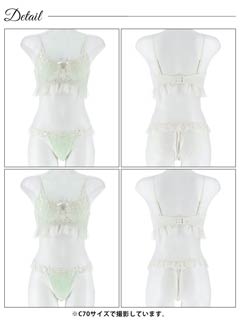 オールレースカットストリング育乳脇高ブラジャー&バック透けフルバックショーツ