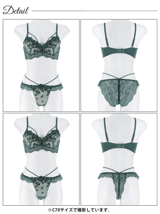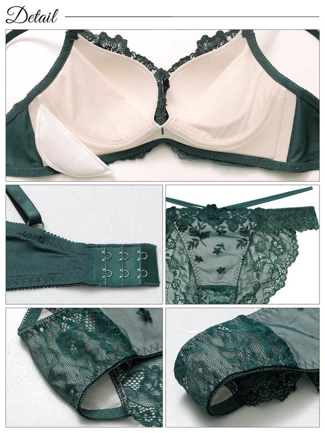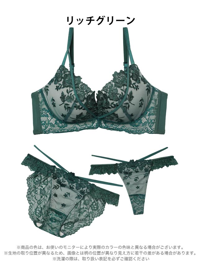 ダスティブルームエンブロイダリー育乳脇高ブラジャー&バック透けフルバックショーツ