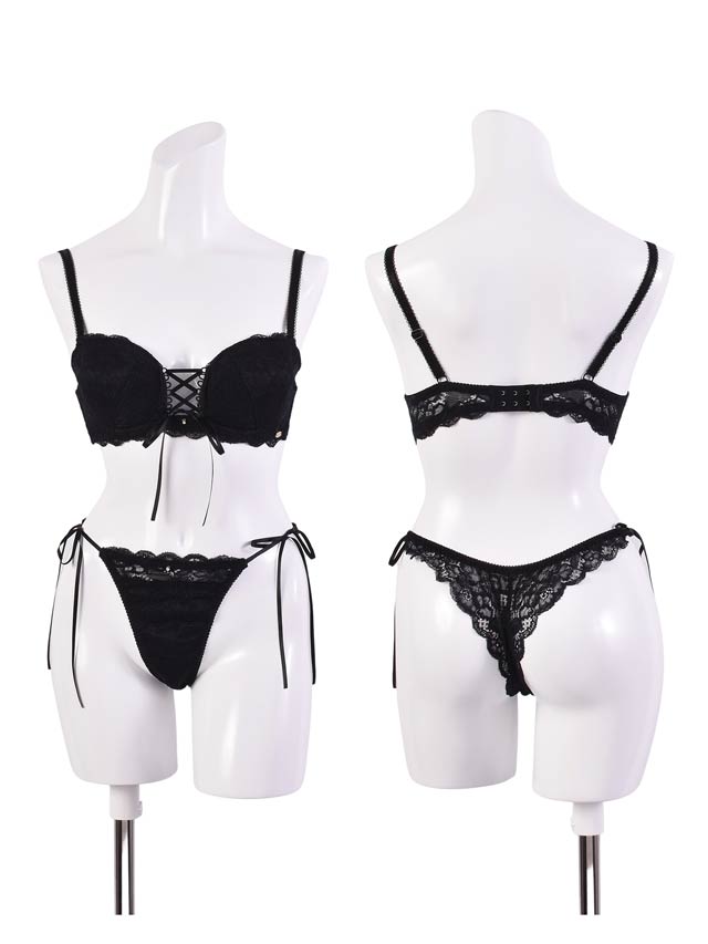 【Rちゃんプロデュース/LEMURA】LaceUp Ribbon Lingerie-Tバックセット-