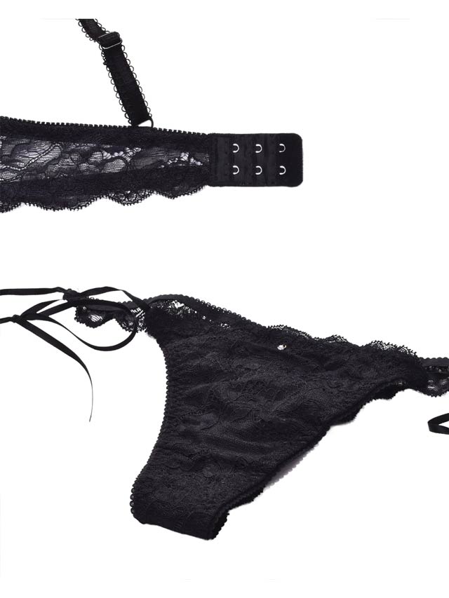 オールレースカットストリング育乳脇高ブラジャー&バック透けフルバックショーツ