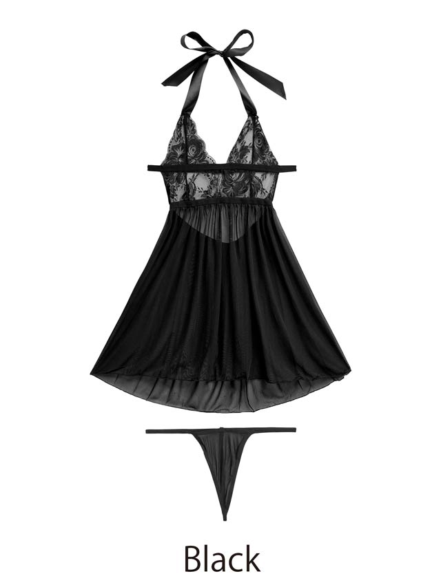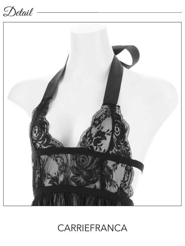 10/24新作![CARRIEFRANCA]ブルーミングリボンホルターベビードール