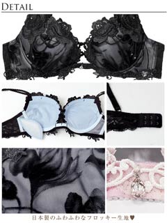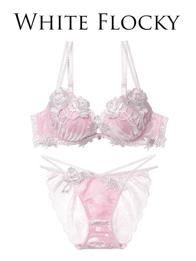ダスティブルームエンブロイダリー育乳脇高ブラジャー&バック透けフルバックショーツ