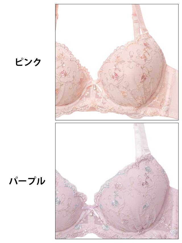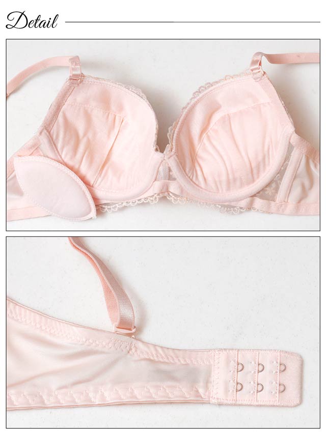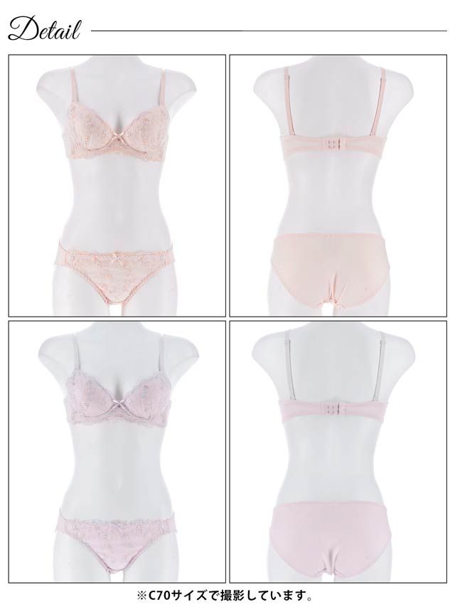 ダスティブルームエンブロイダリー育乳脇高ブラジャー&バック透けフルバックショーツ