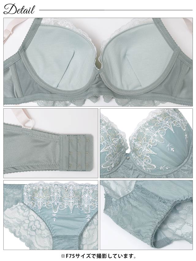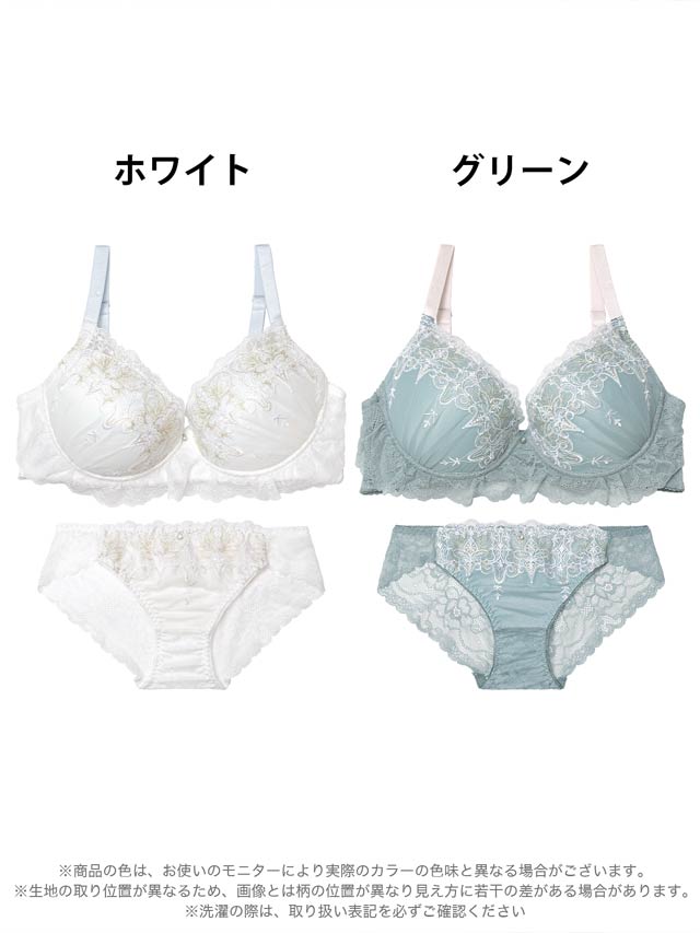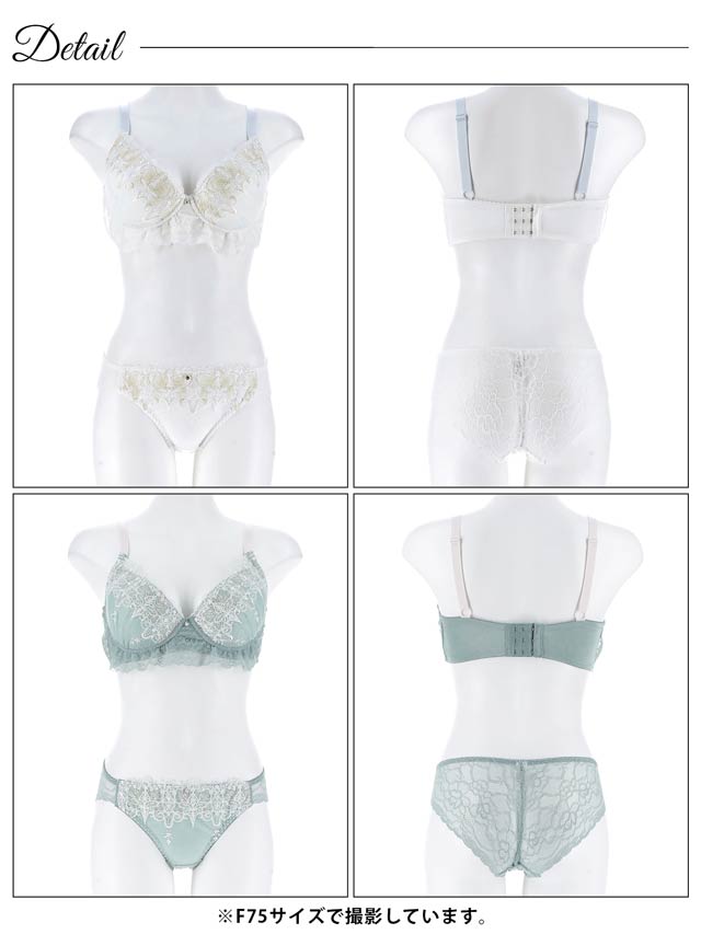 ダスティブルームエンブロイダリー育乳脇高ブラジャー&バック透けフルバックショーツ