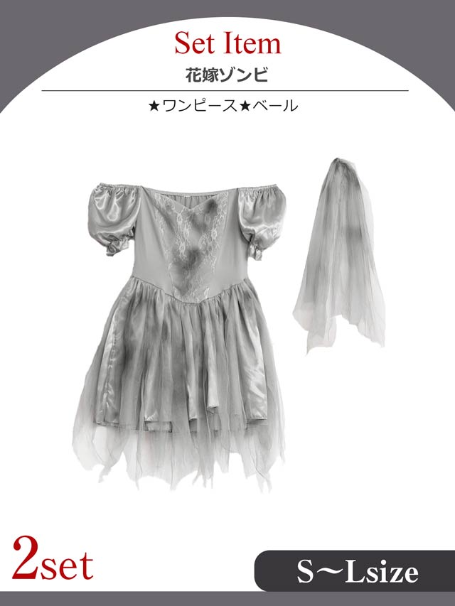 10/3新作![2点SET]花嫁ゾンビコスチューム[伊藤桃々着用]【2025ハロウィン/コスプレ】