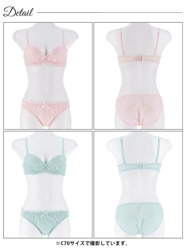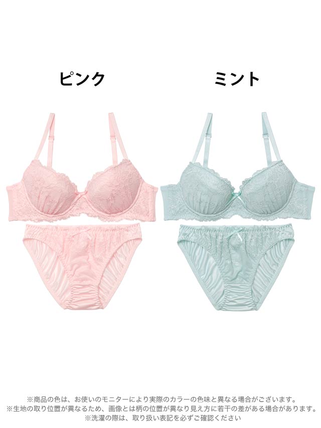 ダスティブルームエンブロイダリー育乳脇高ブラジャー&バック透けフルバックショーツ