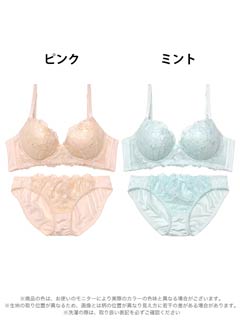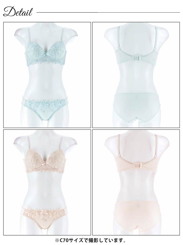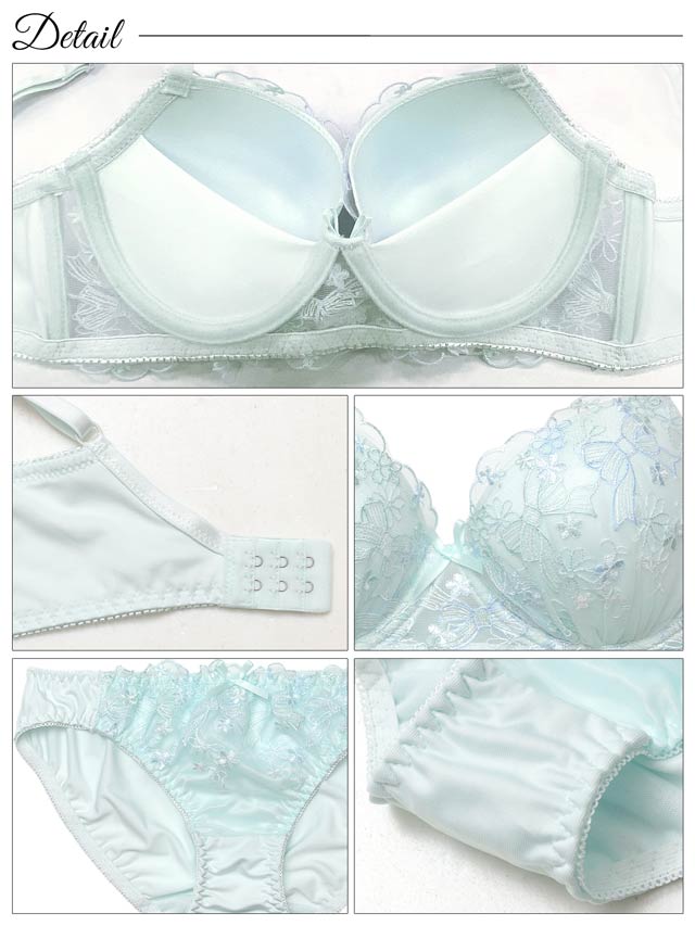 ダスティブルームエンブロイダリー育乳脇高ブラジャー&バック透けフルバックショーツ