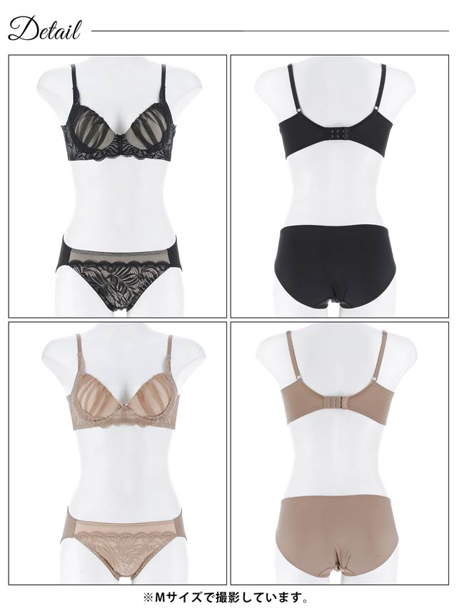 オールレースカットストリング育乳脇高ブラジャー&バック透けフルバックショーツ