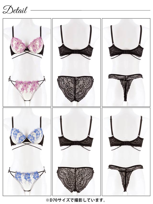 ダスティブルームエンブロイダリー育乳脇高ブラジャー&バック透けフルバックショーツ