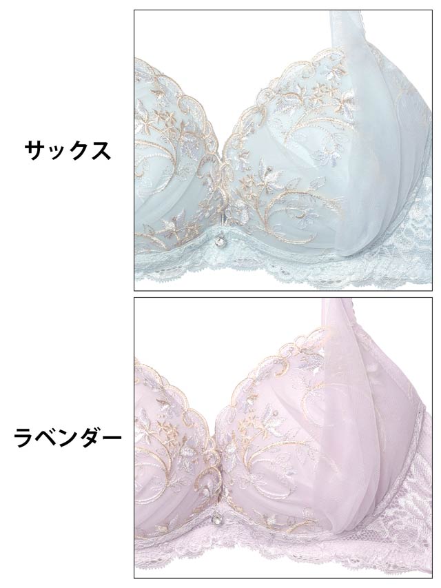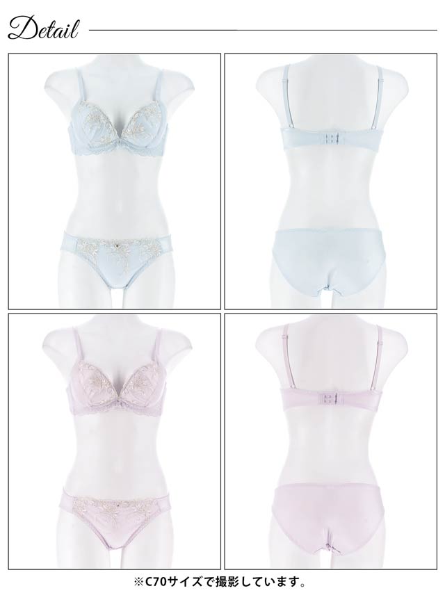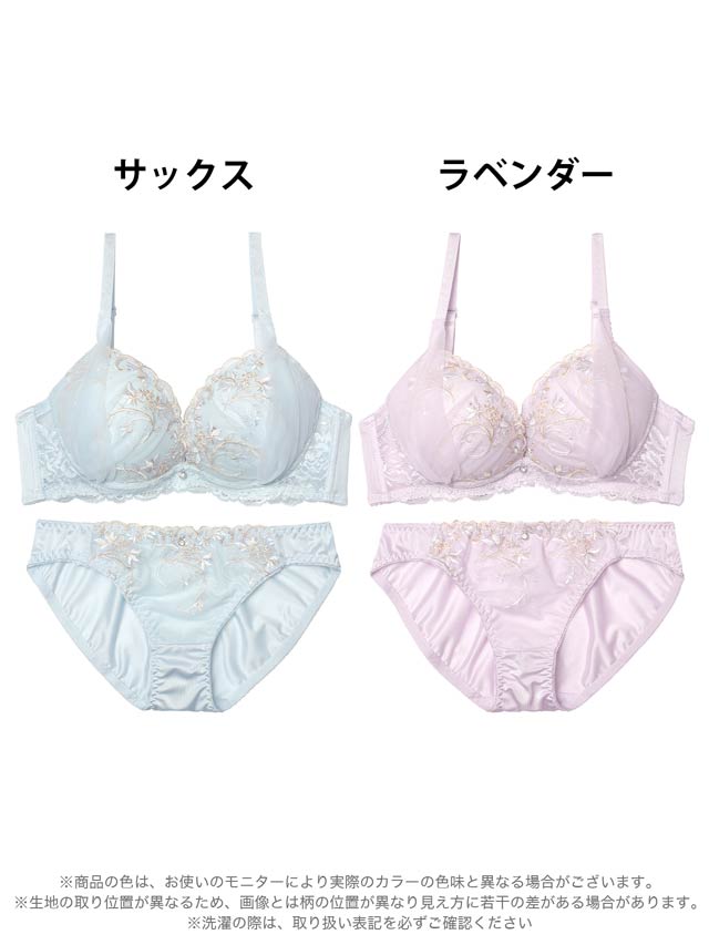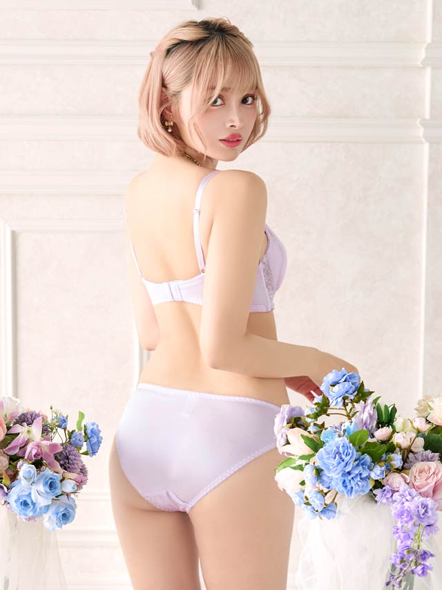 ダスティブルームエンブロイダリー育乳脇高ブラジャー&バック透けフルバックショーツ