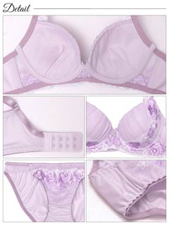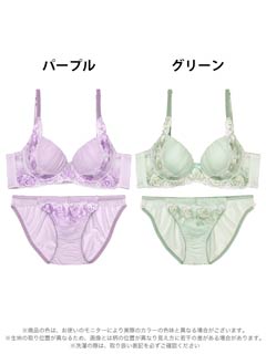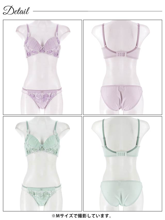 ダスティブルームエンブロイダリー育乳脇高ブラジャー&バック透けフルバックショーツ