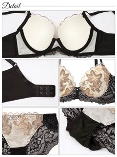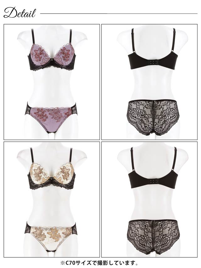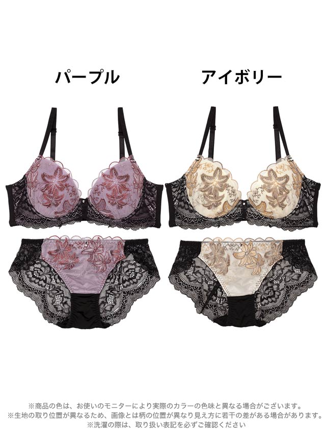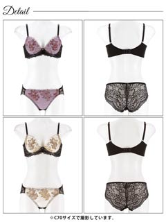 ダスティブルームエンブロイダリー育乳脇高ブラジャー&バック透けフルバックショーツ