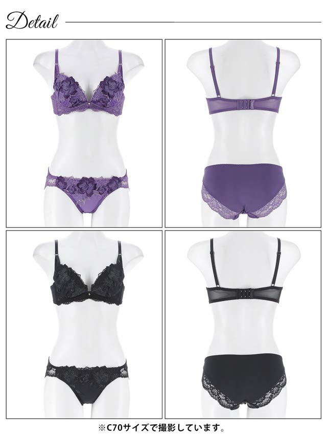 ロマンティックベルローズ育乳脇高ブラジャー&バック透けフルバックショーツ