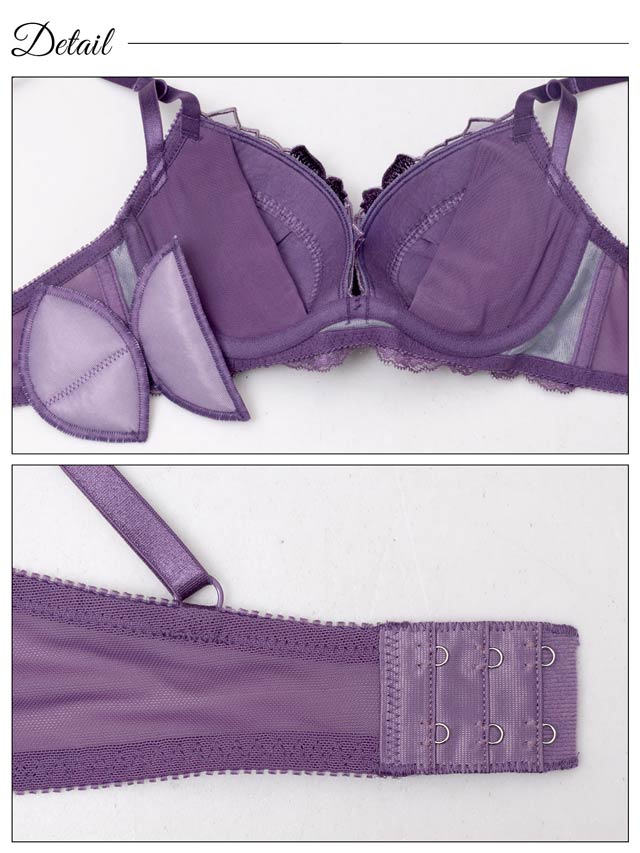 オールレースカットストリング育乳脇高ブラジャー&バック透けフルバックショーツ