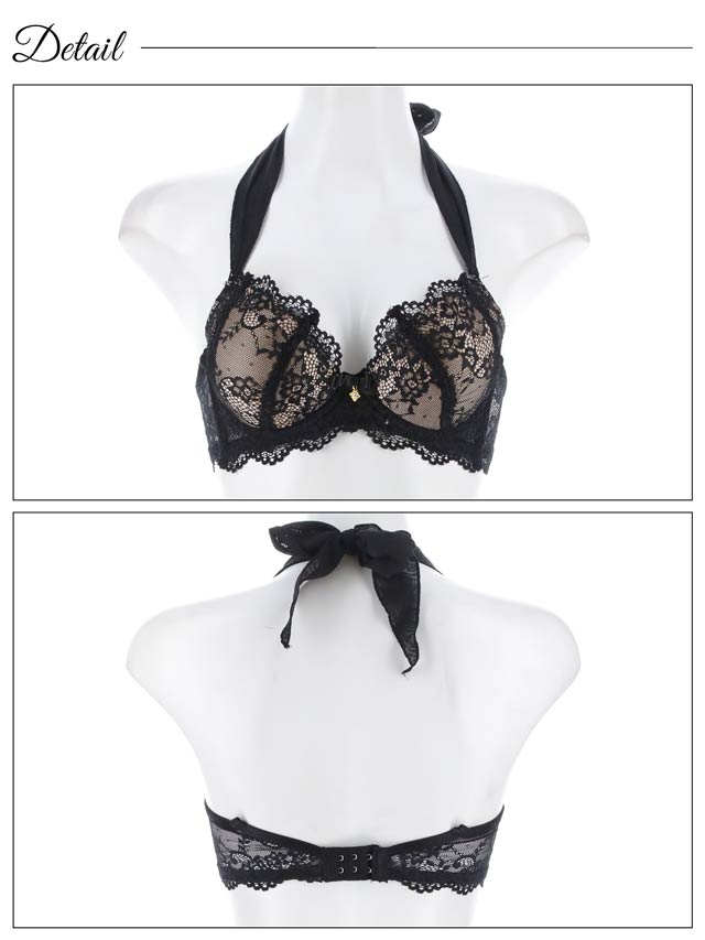 オールレースカットストリング育乳脇高ブラジャー&バック透けフルバックショーツ
