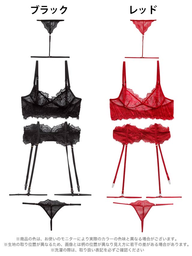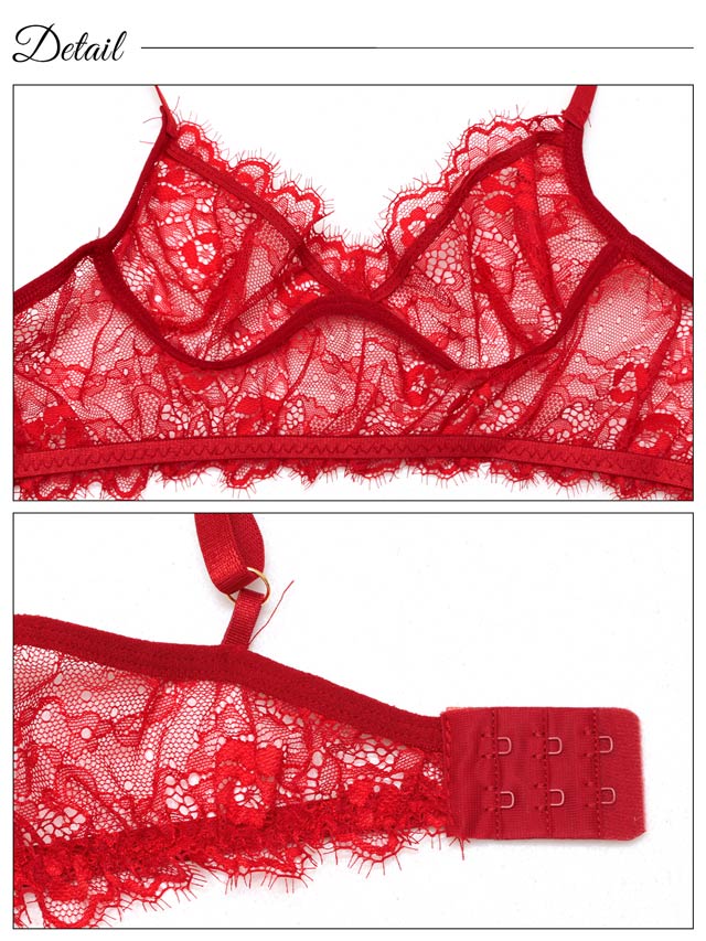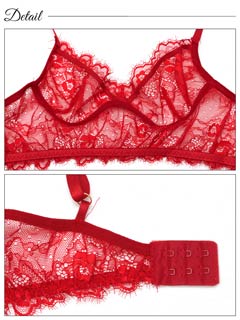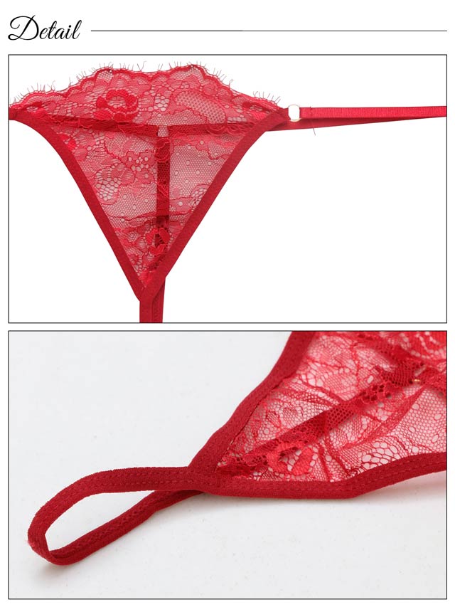 オールレースカットストリング育乳脇高ブラジャー&バック透けフルバックショーツ