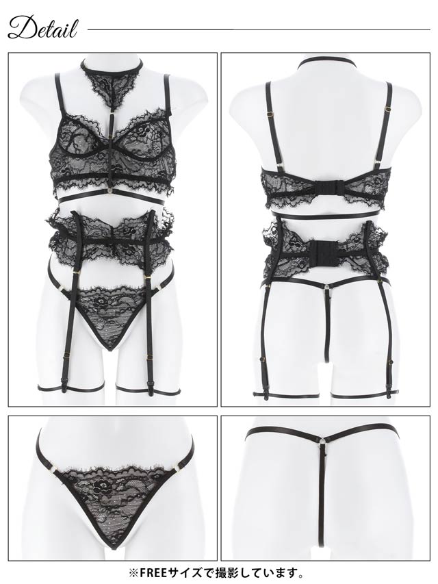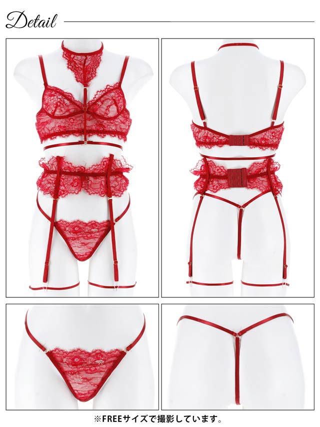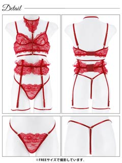 10/8新作!【4点セット】センシュアルレディレースブラジャー&Tバック&チョーカー&足リンク[大人気]
