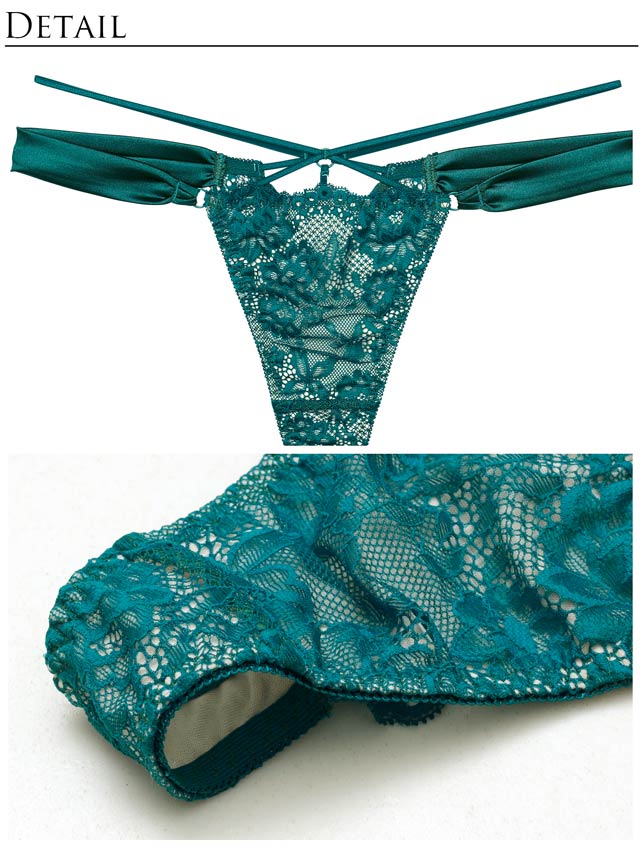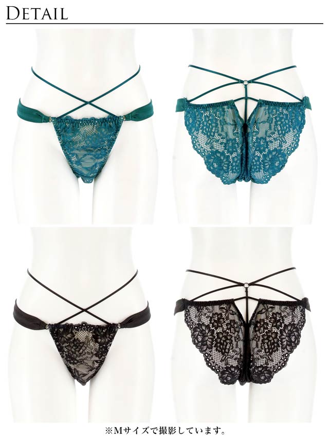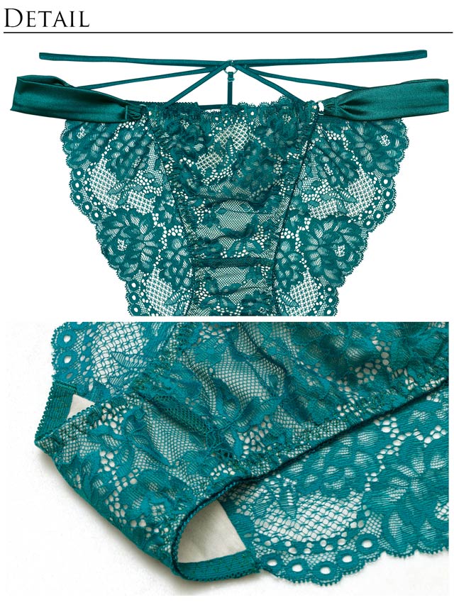 オールレースカットストリング育乳脇高ブラジャー&バック透けフルバックショーツ