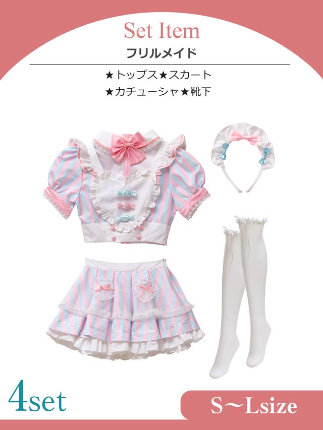 10/9新作!【オサレカンパニー監修】[4点SET]キャンディーフリルメイドコスチューム【2025ハロウィン/コスプレ】