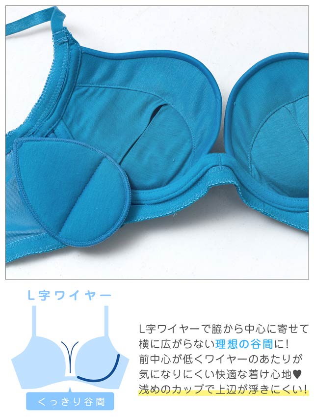ダスティブルームエンブロイダリー育乳脇高ブラジャー&バック透けフルバックショーツ