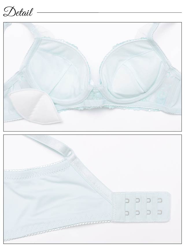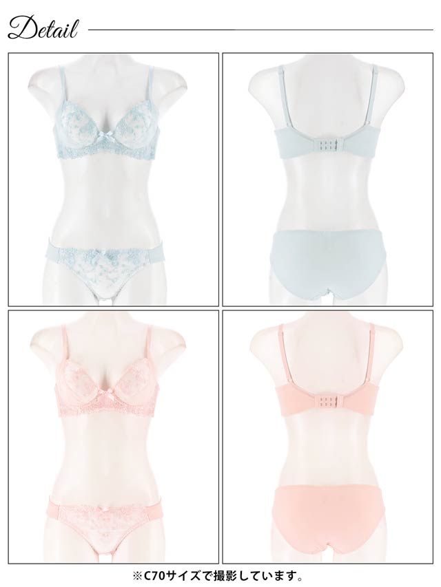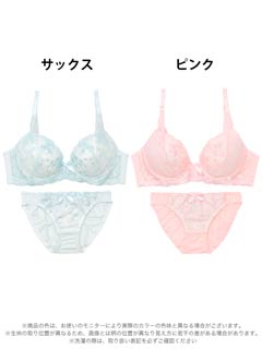 ダスティブルームエンブロイダリー育乳脇高ブラジャー&バック透けフルバックショーツ