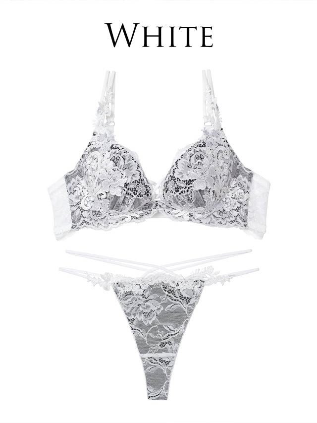 12/2再販!【三上悠亜着用】エレガンスフラワー刺繍ブラジャー&フルバックショーツ[激売れ]